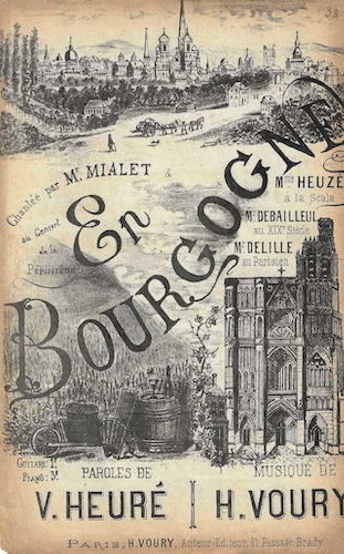 Grande première ! Grâce à la complicité de Dominique Boissy, ancien élève de Michelle Leclerc-Barré (1939-2006), passionné de musique, qui anime avec humour et talent le « blog de Dominik », seront recréées pour notre plaisir, quelques chansons composées par Victor Heuré il y a près d’un siècle et demi, données à l’époque, à Paris sur les scènes des cabarets La Scala, Les Ambassadeurs, ou encore sur celle de notre Théâtre par l’Orphéon de Sens. Et « clou final » historique, vous pourrez entendre, mises en musique, des rimes bourguignonnes, dont certaines totalement inédites qui évoquent notre cité !